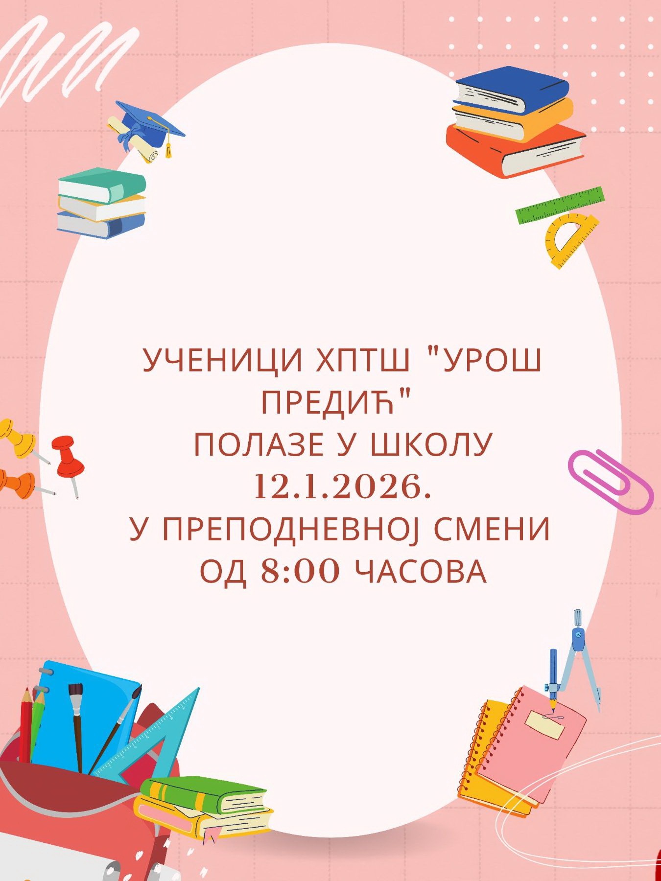 Друго полугодиште почиње у понедељак, 20. јануара 2025. године. Школа ће радити.